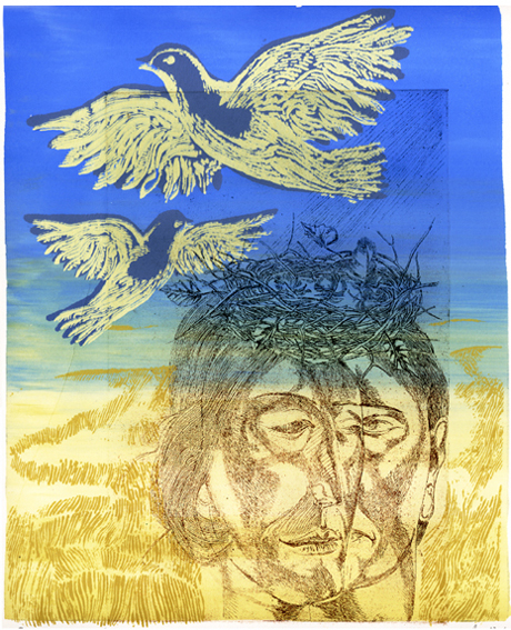 »Das Flötenspiel« von Hermann Hesse war das erste Blatt, was ich bis zum Ausdruck ohne größeren Aufwand realisieren konnte. Einige Jahre später baute meine Patenbrigade, eine Schlosserbrigade aus Parchim, eine Handwäschemangel zu einer Radierpresse um, so dass ich nun auch größere Formate drucken konnte und nun völlig autark war. Die kleinere Druckpresse, die ich nun nicht mehr benötigte, verschenkte ich an einen Rostocker Kollegen, der aktuell unter dem gleichen Mangel litt wie ich vor Jahren.