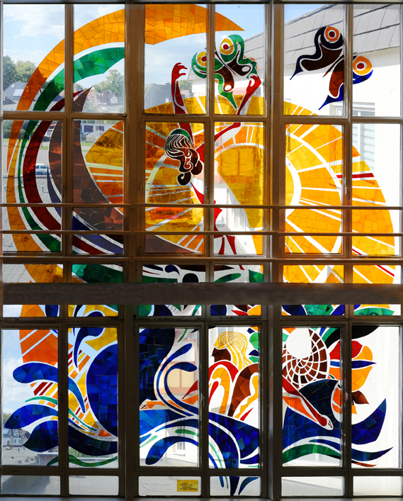 Da niemand meiner Kollegen sich auf das Abenteuer einer Farbglasgestaltung einlassen wollte, nahm ich mich dieser Aufgabe an. Mit großem Glück fand ich in Naumburg einen jungen Glasermeister, der für die Realisierung einer solchen Arbeit nicht nur das handwerkliche Potenzial, sondern auch die notwendige Menge farbigen Glases besaß.